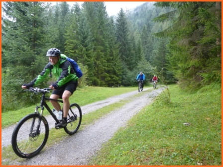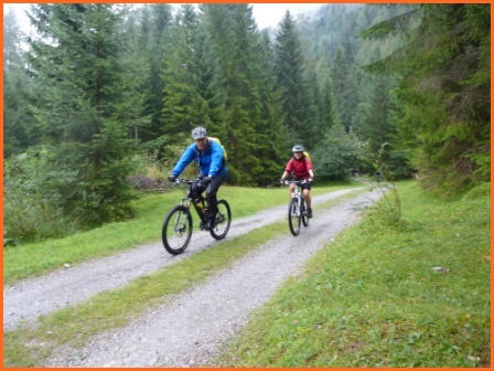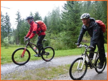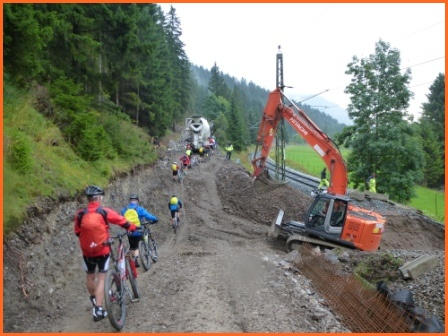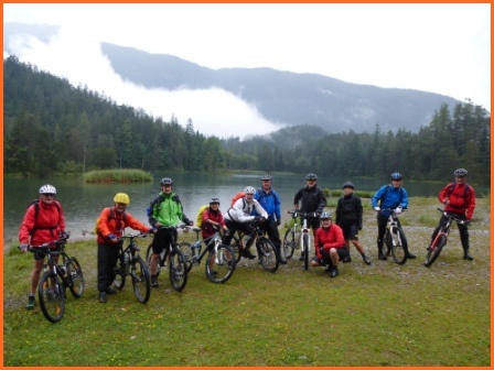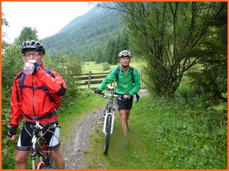 ein wenig trailmäßig hoch zum Fernpass. Bergab geht es auf tollem Trail, vorbei am Schloß Fernsteinsee hinunter nach Nassereith und Imst, unserem ersten