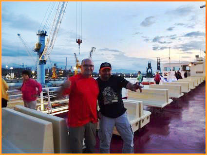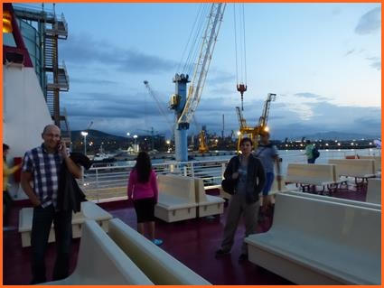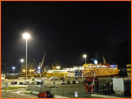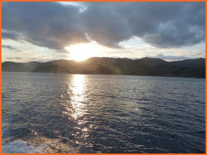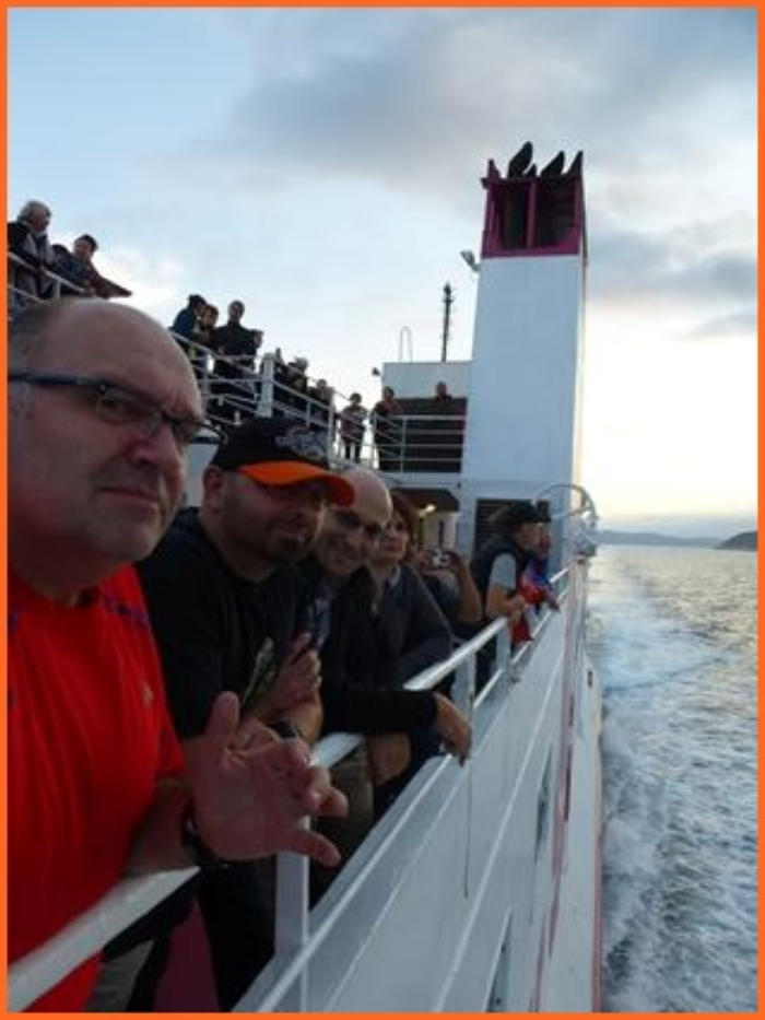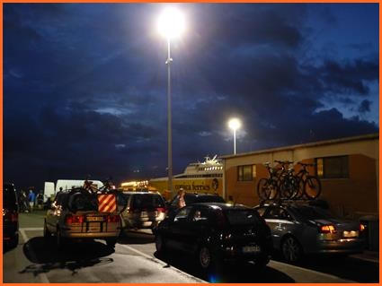Nach dem der Audi A8 von Winfried voll bepackt war, sind wir gegen 20 Uhr in Richtung Elba aufgebrochen. Bei der Autofahrt durch die Nacht haben wir uns abgewechselt. Am nächsten Morgen gegen 6 Uhr sind wir am Hafen in Piombino angekommen. Die nächste Fähre haben wir nur um ein paar Minuten verpasst. Wir haben dann die Fähre um 7:30 Uhr genommen. Auf der Überfahrt (50 min.) haben wir den Sonnenaufgang auf Deck und die Frische meerluft genossen.