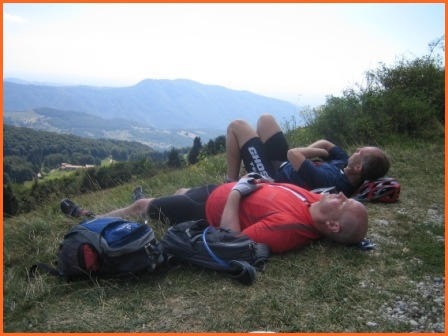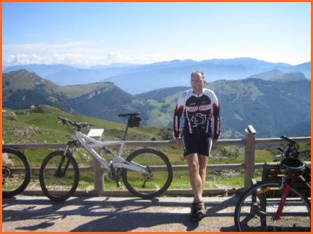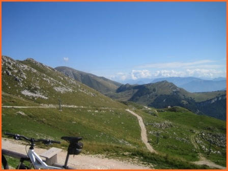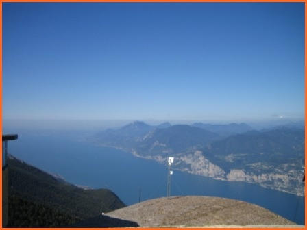 Kurzer Tourbericht:Am 3. Tag ist ein ehem. Arbeitskollege von Markus durch Zufall im gleichen Hotel abgestiegen wie wir. Dietmar hat sich ein Bike ausgeliehen und ist mit uns auf Tour gegangen. Hier sitzen wir in Malcesine beim Capuccino und warten auf die Gondel, die uns auf den Monte Baldo bringen soll.Die Tour verlief meist auf dem Bergrücken ohne nennenswerte Trails. Der Rückweg verlief dann auf der Seeseite und wir hatten wieder den schönen Blick auf den See.