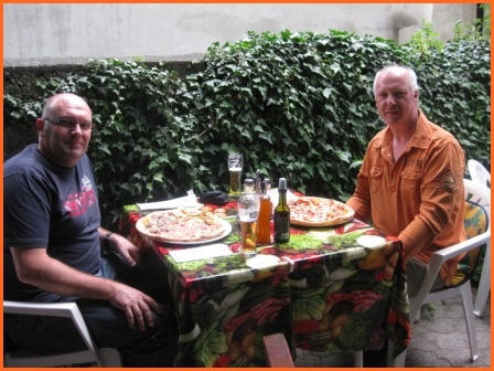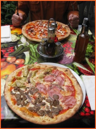 Das wohl verdiente Essen bei Jollys- Pizzaria in Latsch. Es hat einen kleinen Biergarten.Pizza ist lecker!
