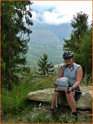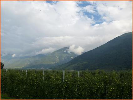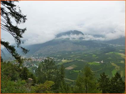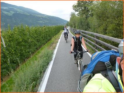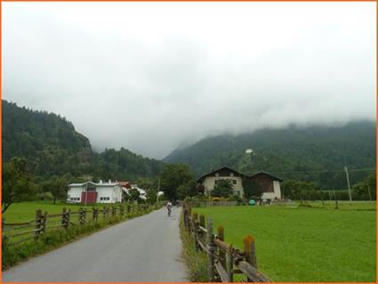 Himmel schon leicht zugezogen. Das heisst – Regensachen in den Rucksack. Über die Via-Claudia sind wir nach Goldrain gerollt.