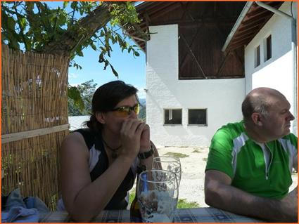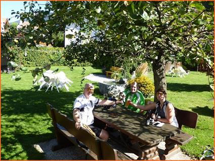 Zum Tourabschluss, wie immer ein kühles Weizen bei uns im Garten.Proßt!