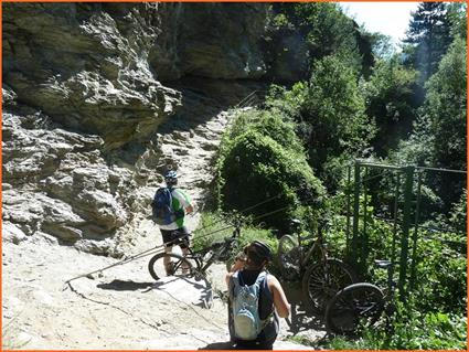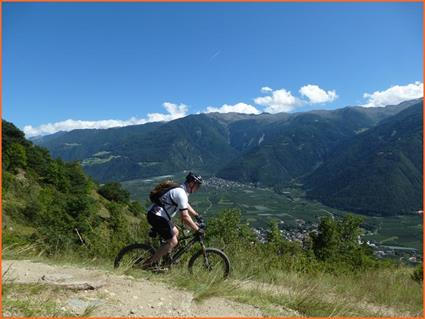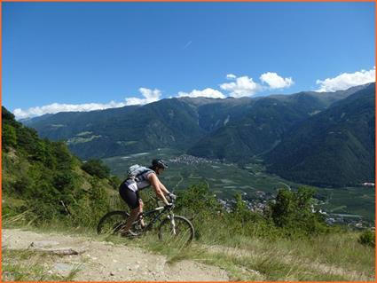 Tourbericht: Tschilli-TrailDer Tschilli-Trail macht seinem Namen (Tschilli) alle Ehre. Zum Warmfahren mussten wir nach Kastelbell mit leichtem Gefälle radeln. Von da aus geht es erstmal rd. 1.000 hm am Stück in die Höhe. Am Ratschillhof (1.285m) angekommen, haben wir uns die Südtiroler Hausmannskost gegönnt und einen frischen und leckeren Kaiserschmarrn einverleibt. Dazu wie immer ein kühles alkfreies Hefeweizen. Kaum haben wir den Hof verlassen, ging der verblockte steinige Teil schon los. Ein AM-Bike finde ich hier nicht ganz angebracht. Es waren ein paar Schiebe- und Tragepassagen dabei. An diesen Stellen war eine bessere Fahrtechnik gefragt – als wir sie hatten. Es steht safety first immer an oberster Stelle! Auf den Wegweisern stand der Schwierigkeitsgrad S2. Lassen wir das mal so stehen. Der Rest des Trail war flowig und toll zu fahren. Am Hang entlang hatten wir immer wieder schöne Ausblicke. Klasse Tour!