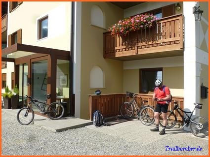 Nach dem wir unser Gepäck im Zimmer hatten und die Bikes im Keller abgestellt hatten, haben wir uns